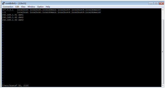 进入编辑模式后,按照规则写入主机与ip的对应关系(主机名称dk41是自己命名的,如下图)例: