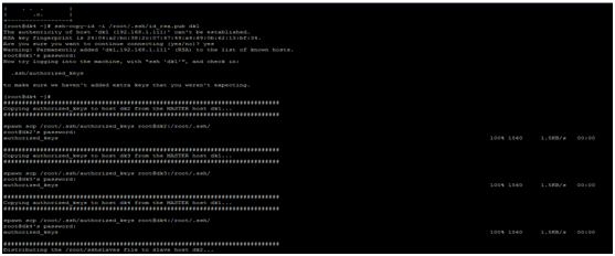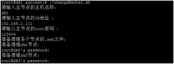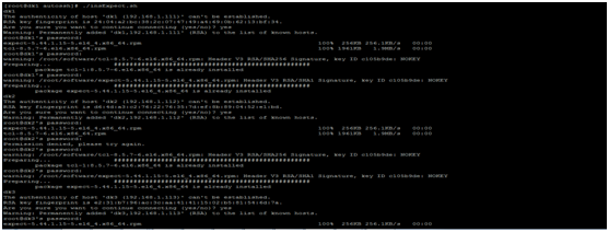 b)执行insExpect.sh,系统会装两个rpm包,在执行sshpass.sh的过程中无需再输密码和yes,脚本自动继续执行。 命令: cd /root/DKHPlantform/autossh ./insExpect.sh 按照提示多次输入yes和密码(如下图)