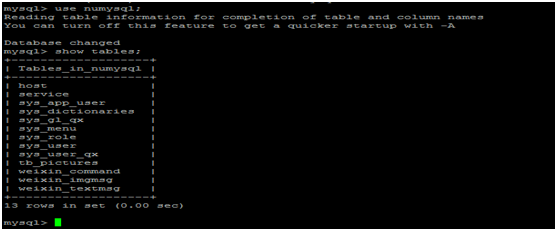 4.创建数据库 步骤: (1)导入MySQL数据表,只在主节点执行: 命令: mysql -uroot -p123456 < { 此处为sql文件,主目录下文件: dkh.sql} 如:mysql -uroot -p123456 </root/DKHPlantform/dkh.sql (2)执行完后查看一下两台mysql的数据表是否存在,从节点查看执行: 命令: mysql -uroot -p123456 show databases;