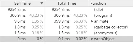 主要对比上面两个代码块的执行效率,打开谷歌浏览器的 Performance 运行 10 秒左右,打开 Summary 对比: