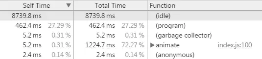 下面数据是对比 omi-transform 和 react-transform,两种方式使用 chrome profiles 了一把。