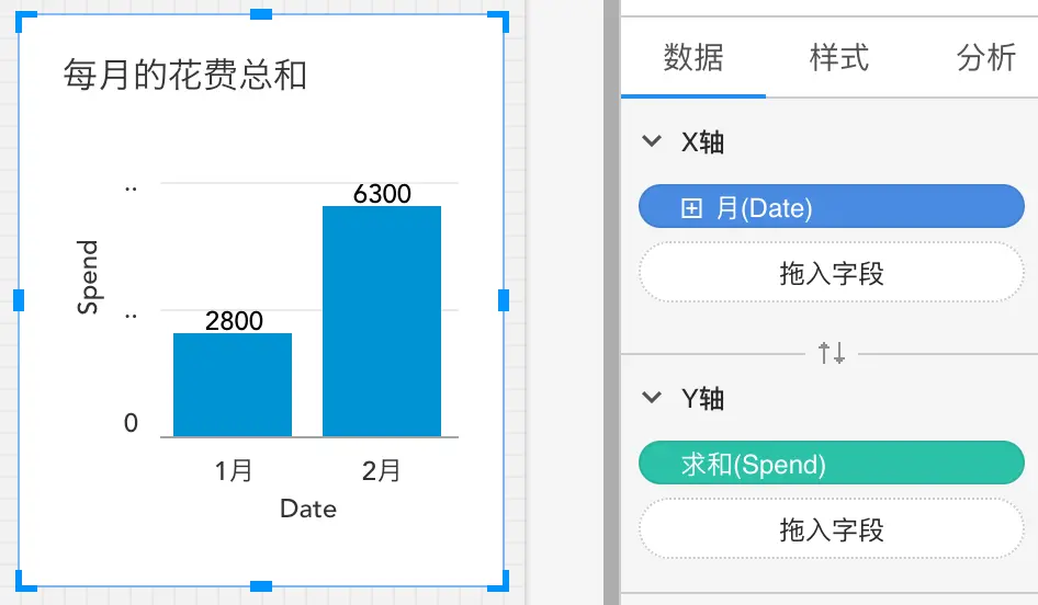 蓝色的 [Month] 对应的是我们X轴的字段 [月(Date)]