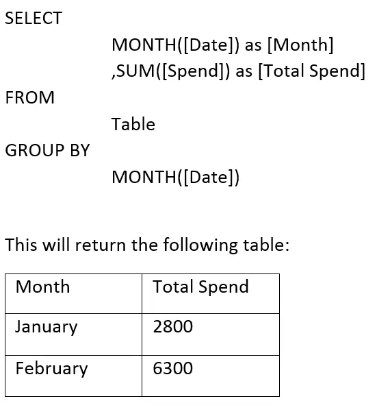 这段SQL很容易理解,就是对Date进行了Group by,然后对Spend进行了求和。