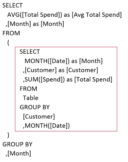 那我们现在来正式看一下INCLUDE表达式。在这里,我们将回答在文章开头部分提出的问题:“每个月客户花费的平均总金额是多少?”