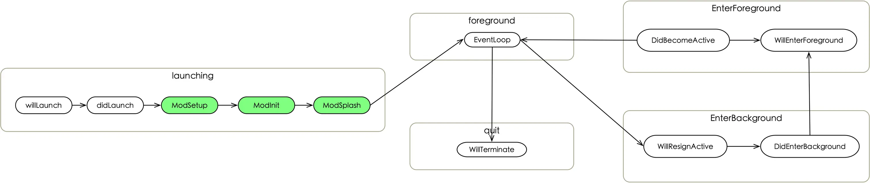 - App生命周期的分发,将耦合在AppDelegate中的逻辑拆分,每个模块以微应用的形式独立存在。