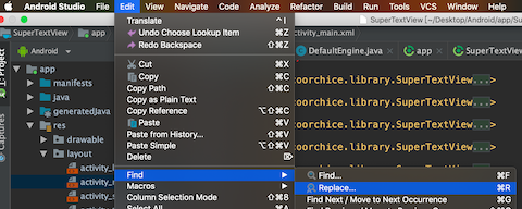 如果开发者使用的是 AndroidStudio,从 Edit > Find > Replace 打开批量替换对话框,然后按照下图操作即可。
