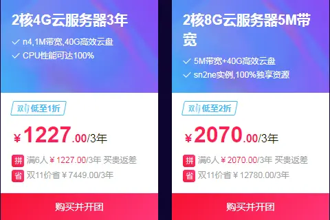 点击“我要参团”,或者,在2核8G云服务器3年下方点击“购买并参团”即可。
