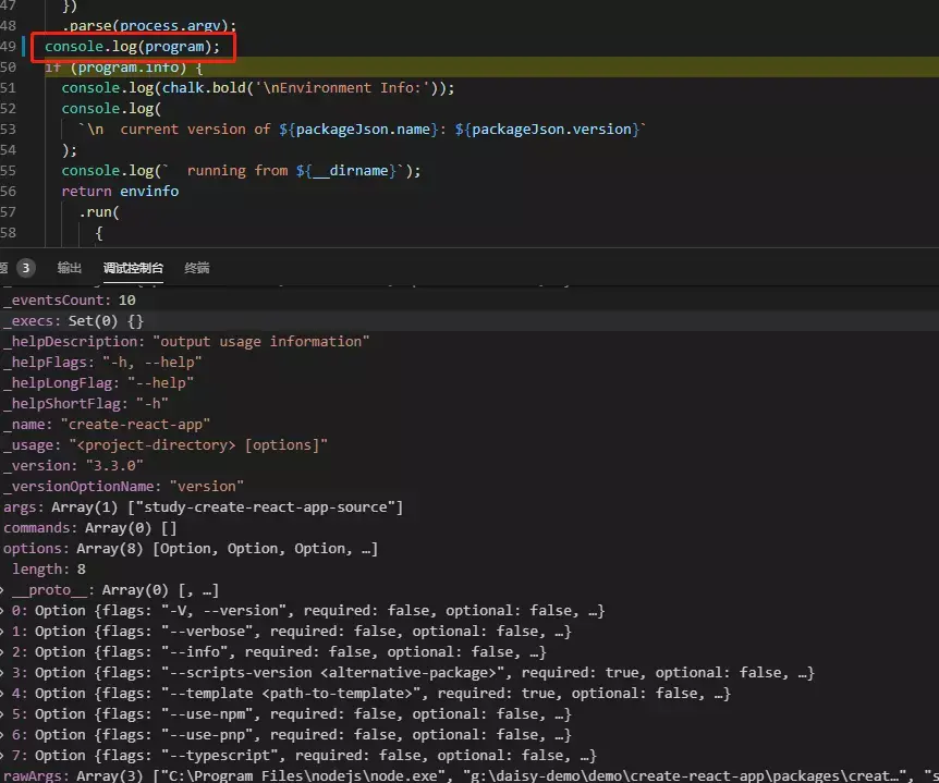 .option('--verbose', 'print additional logs') // option配置`create-react-app -[option]`的选项,类似 --help -V