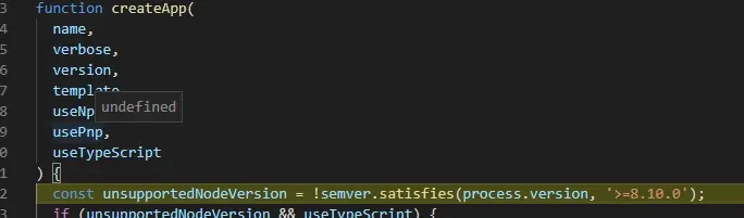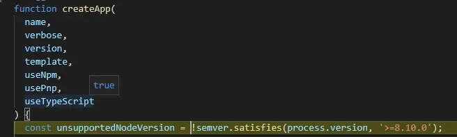 index.js 的代码非常的简单,其实就是对 node 的版本做了一下校验,如果版本号低于 8,就退出应用程序,否则直接进入到核心文件中,createReactApp.js中