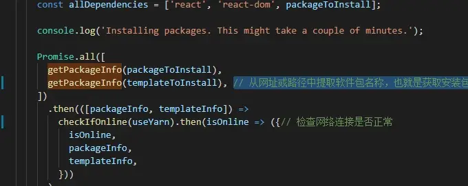 if (useYarn) {// 判断是否使用yarn,如果是替换成你怕吗 npm 默认使用npm