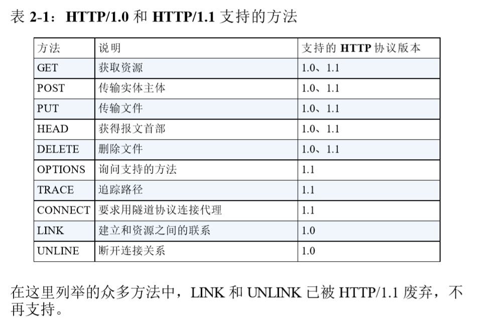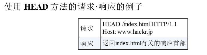 HEAD 方法和 GET 方法一样,只是不返回报文主体部分。用于确认 URI 的有效性及资源更新的日期时间等。