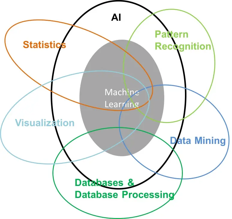 人工智能、机器学习、数据挖掘这些非常相关的术语或知识我们经常看到,也见到很多关于三者关系的文章和讨论。一般来说,人工智能是一个很大的研究领域;机器学习是人工智能的一个目标,提供很多算法;而数据挖掘是偏向算法应用的部分。三者相辅相成,另外也需要其他领域的知识支持。具体关系请参考下图。