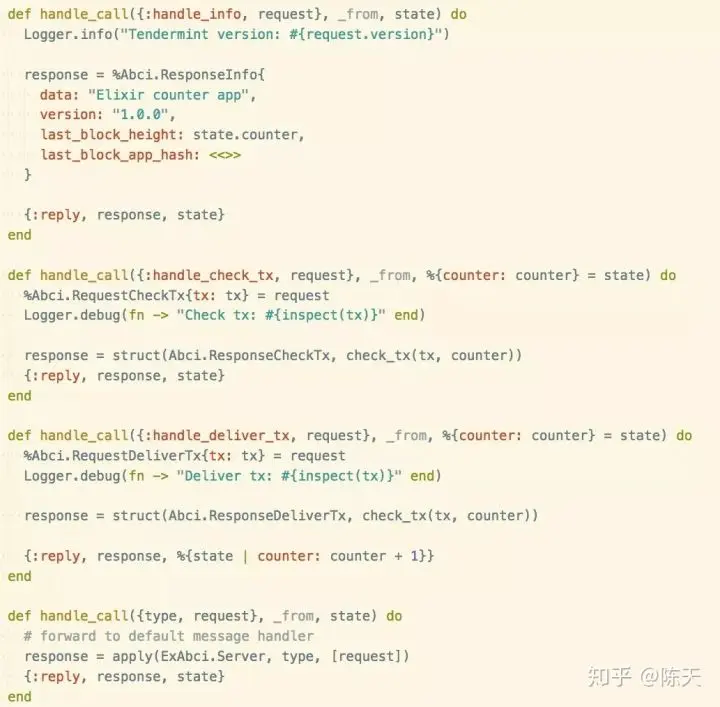 使用 ex_abci,counter app 的核心代码也就几十行,就是实现 info,check_tx,deliver_tx 几个接口即可: