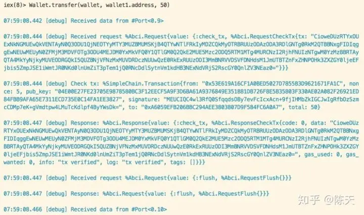 - Wallet.transfer:一个账户给另一个账户打钱。两方的 address 对应的 account 会在 chain 的 MPT 里更新,每个 block commit 之后,MPT root,也就是 app state 会写入 block header。