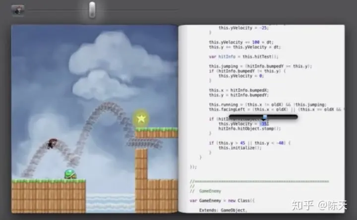 Bret Victor 在他著名的讲座 Inventing on principle,展示了改变认识如何让我们拥有一个又一个 voila moment,比如这个截图,游戏中的时间旅行: