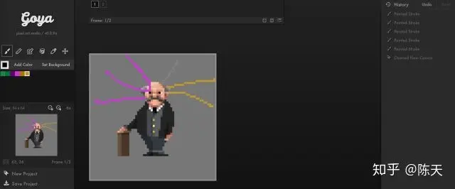 而 clojure 的一个 pixel editor,Goya,也用时间旅行的方式来做 undo / redo,非常简单: