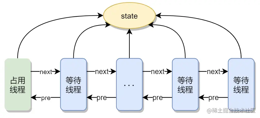 ReentrantLock | 使用AQS保存锁重复持有的次数,当一个线程获取锁时,ReentrantLock记录当前获得锁的线程标识,用于检测是否重复获取,以及错误线程试图解锁操作时,异常情况处理 |