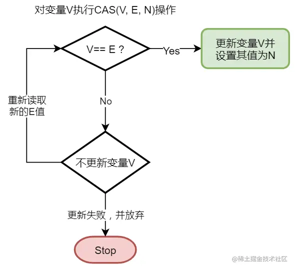 V表示要更新的变量E表示预期值N表示新值