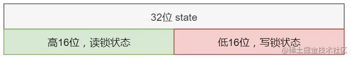ReantrantReadWriteLock | 使用AQS同步状态中的低16位保存写锁持有次数,高16位保存读锁持有次数 |