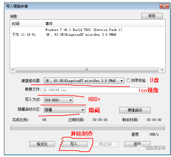 然后点击启动->写入磁盘映像