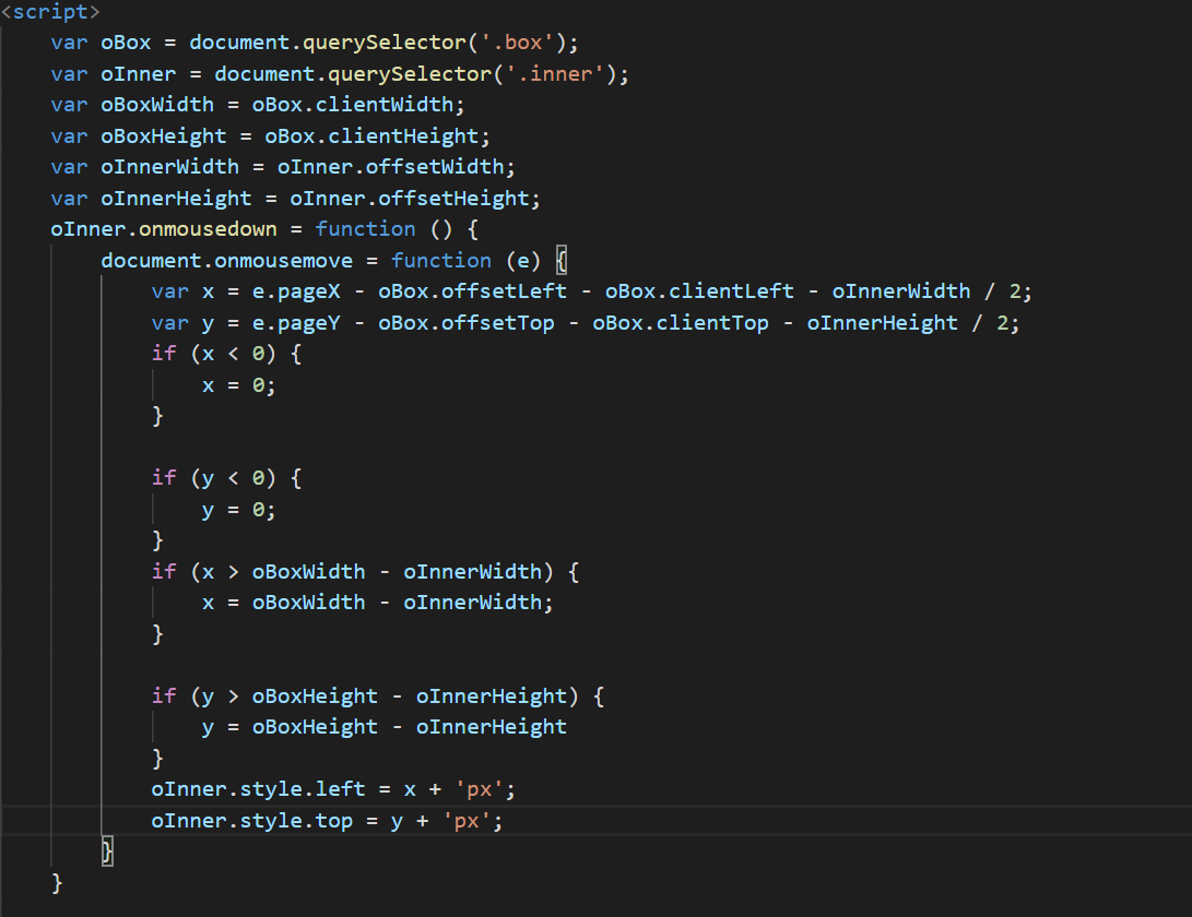 4,然后给父容器添加鼠标按下事件里面在加个子级的鼠标移动事件,我们是相对页面移动的 他的定位是 .pageX .pageY