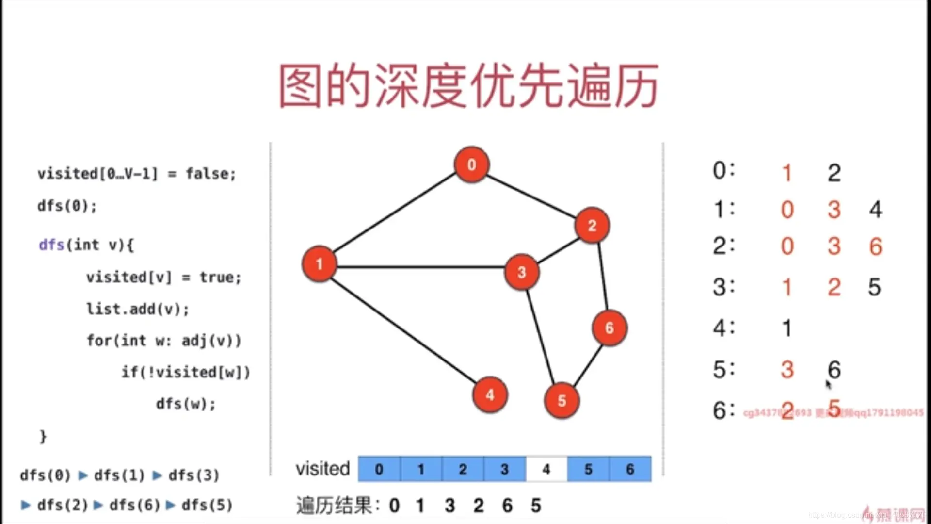 每个顶点仅被访问一次。遍历可以采取两种方法进行:深度优先搜索(DFS,depth first search)