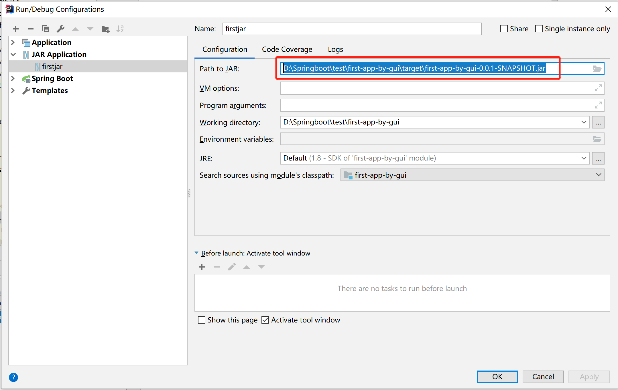 如果是Idea的话,点击设置Path to JAR的路径