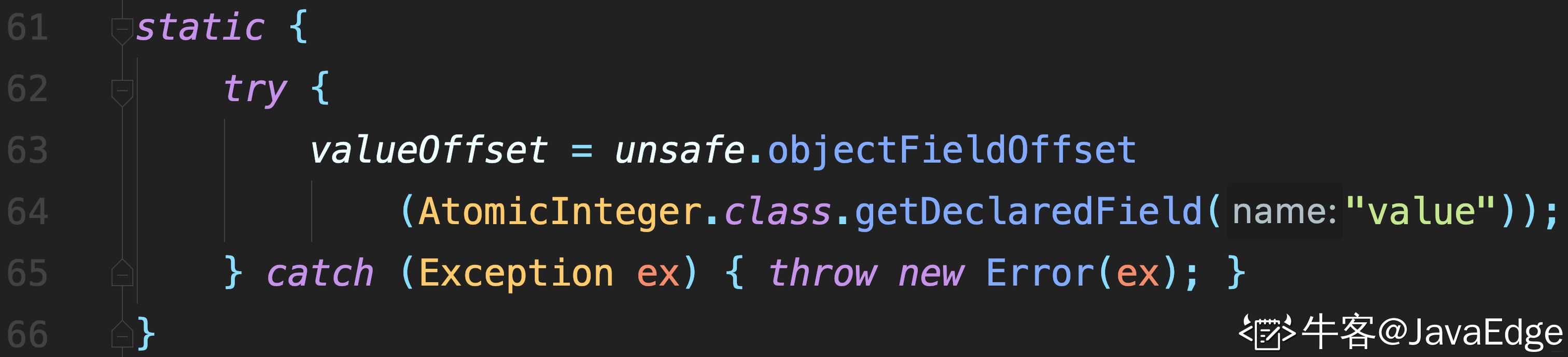 在业务代码中,这种操作一般用锁实现,但 AtomicInteger 原生提供的 compareAndSet 无锁完美解决. 只有 value 的当前值等于 expect 时,才把 value 设置为 update,同时如果设置成功则返回 true,否则返回 false。 借助返回值可以检测方法的执行结果,因此可以在循环操作中不断执行 compareAndSet,直到成功,在线程池的源码中,很多方法都是这种套路。