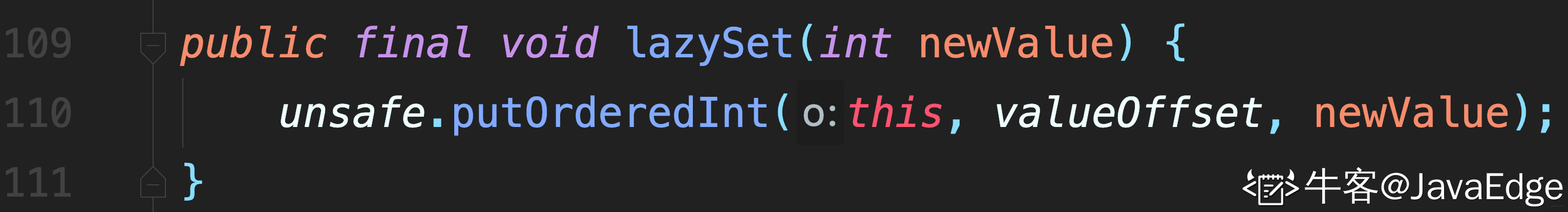 JDK 1.6 时引入. 大部分场景直接用 set 即可,但 set 内存屏障将禁止重排序,这会带来一定的性能消耗,因此非常关心性能,而lazySet不会立刻(但最终会)修改旧值,别的线程看到新值的时间会延迟一些