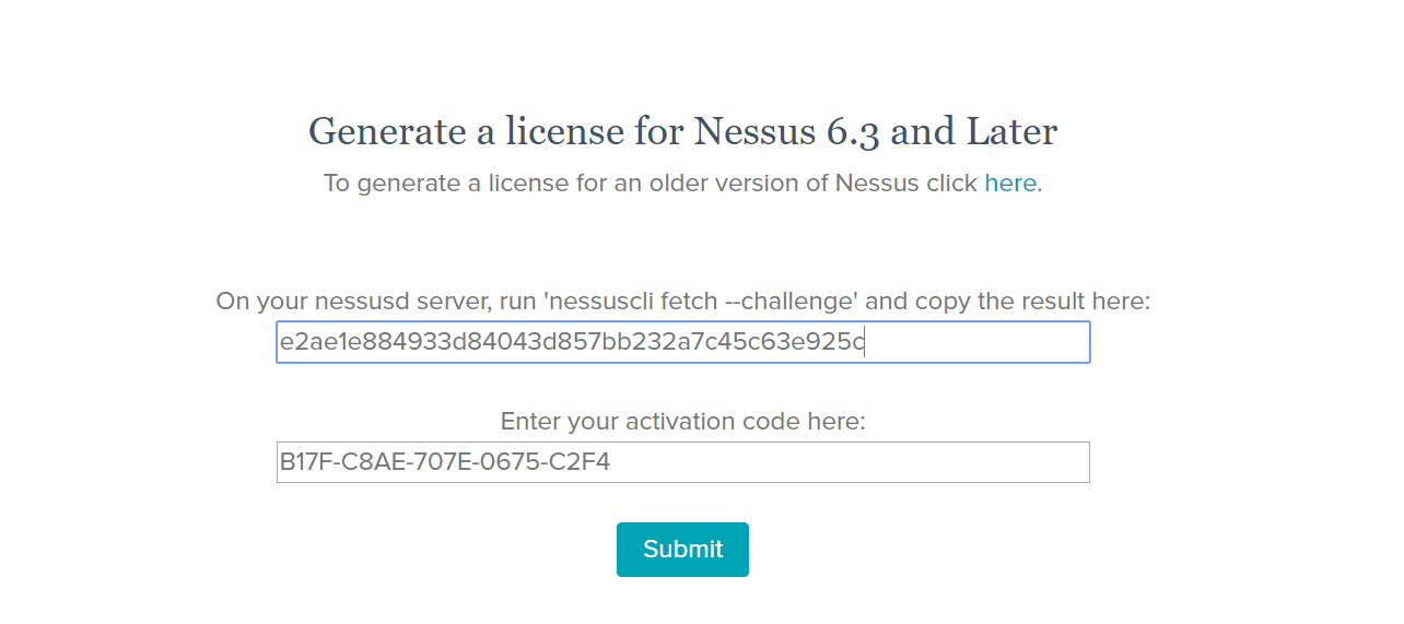 sudo /opt/nessus/sbin/nessuscli fetch --challenge