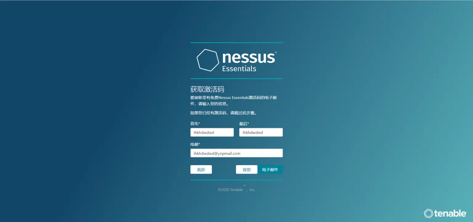 这下可以打开浏览器登录https://kali:8834/,危险警告跳过即可。