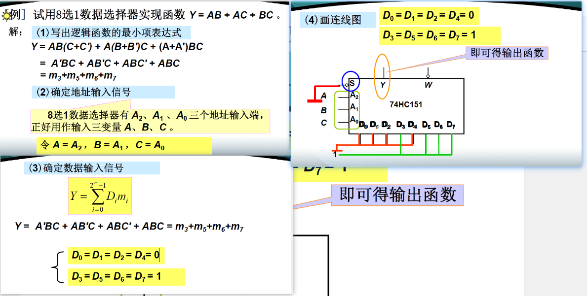 关键:列出数据选择器的输出表达式和逻辑函数表达式进行对比