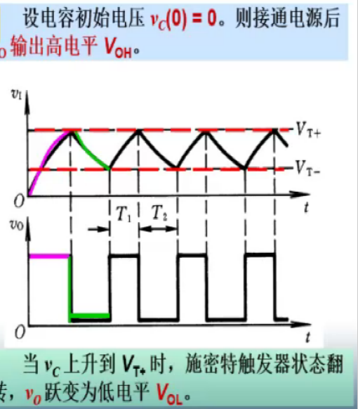 - 由充放电产生自激振荡,产生周期的矩形波信号
