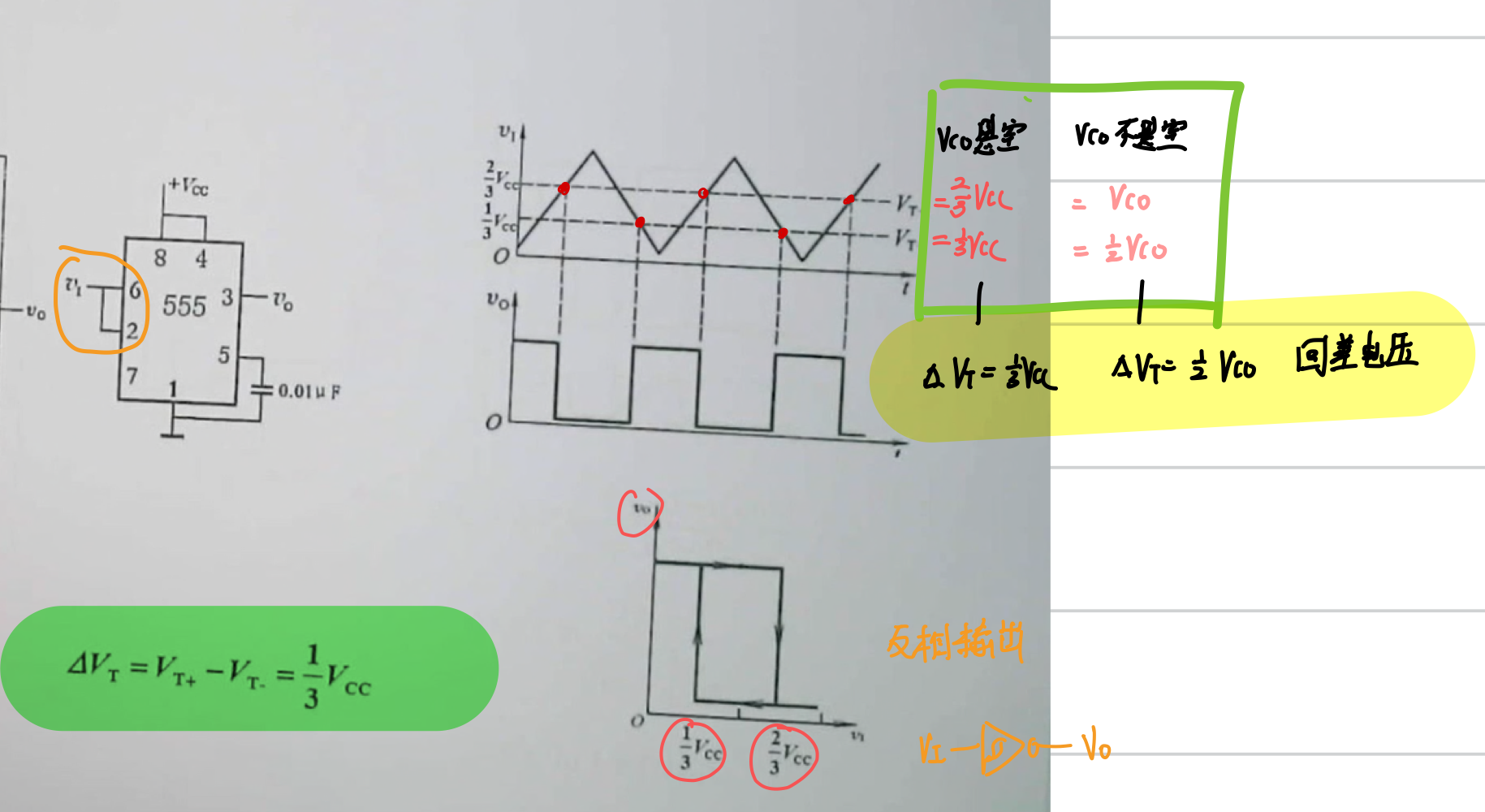 - 找出起点低于Vt-终点高于Vt+的波形线段,选其与Vt+的交点往下画虚线;找出起点高于Vt+起点低于Vt-的波形线段,选其与Vt-的交点往下画虚线;