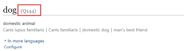 这种独立的ID标记,既能起到消除歧义的作用,也为多语言提供了便利。 也就是说,不同语言描述的同一个东西,都能指向相同的实体或关系。 而在目前,Wikidata的图谱中包含的语言有100多种。