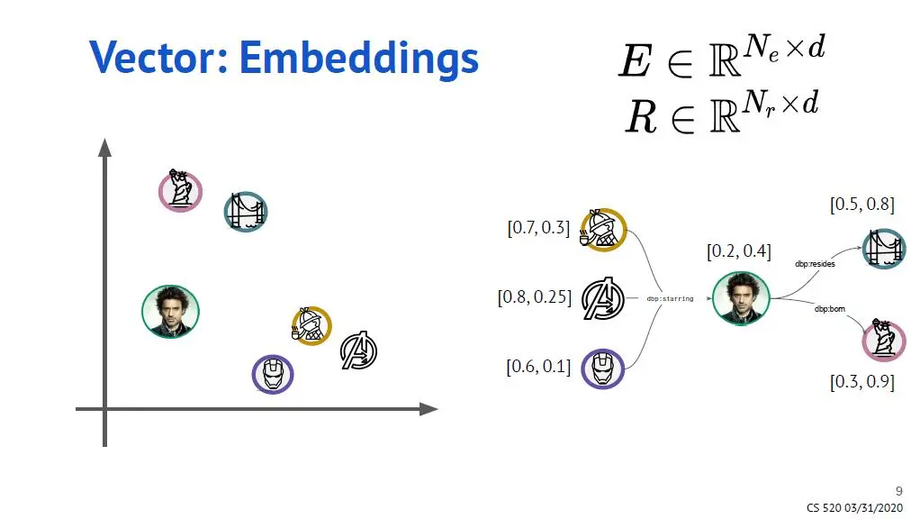 而用向量或张量来表示图谱,就能更好被机器学习的算法所处理。
