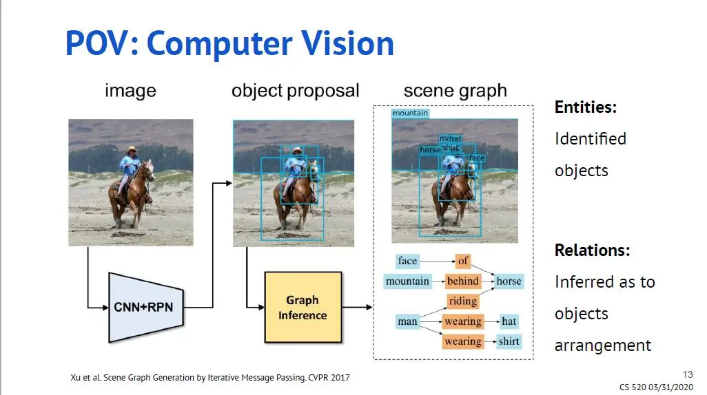 站在计算机视觉的角度,知识图谱可以用来更好地表示图像中识别出的实体的关系。