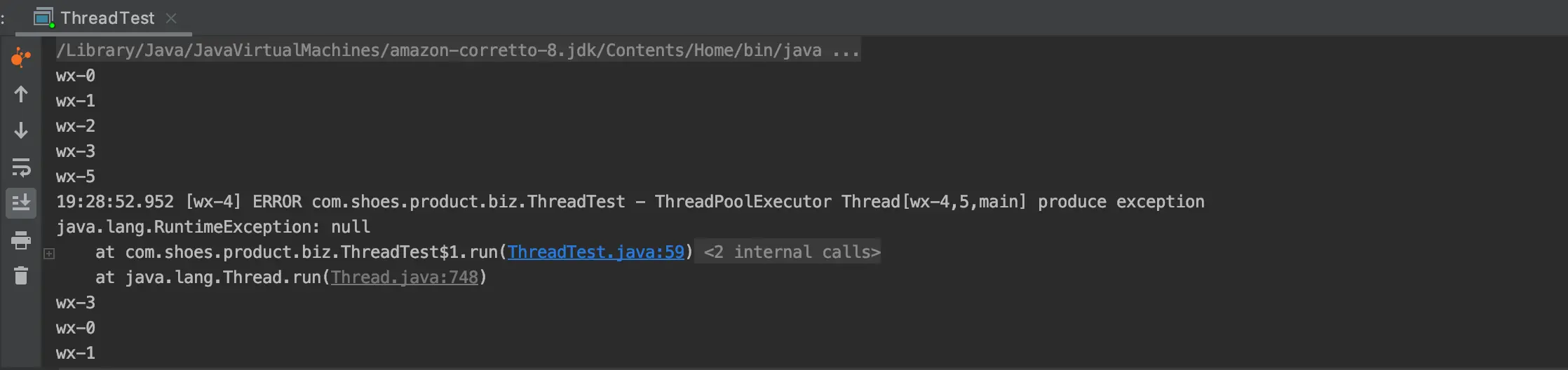System.out.println("线程:" + Thread.currentThread().getName() + "执行任务出现了异常");