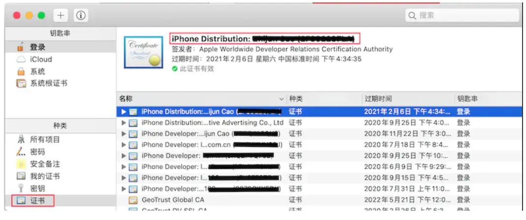 .p12将私钥导出给其他团队成员使用。Identifiers。