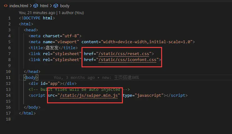 将引入文件夹 static 的 文件路径 全局修改为 /static , 否则会出现 打包上线之后,