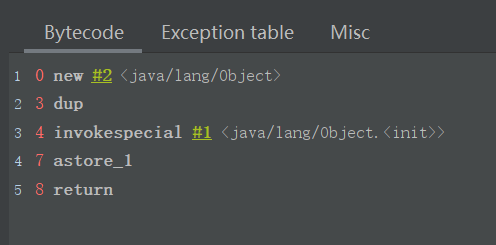 new #2 : 这行指令是说在堆上的某个地址处开辟了一块空间作为Object对象