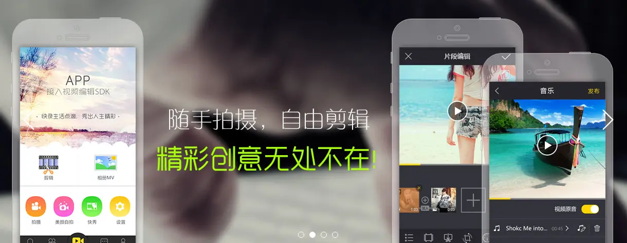 简介:Android视频编辑SDK集手机视频拍摄和视频剪辑主要功能于一体,同时包含手机端视频配音配乐,字幕特效,滤镜,转场特效等各种功能,全方位满足开发者的需求,并可以快速植入到APP中。