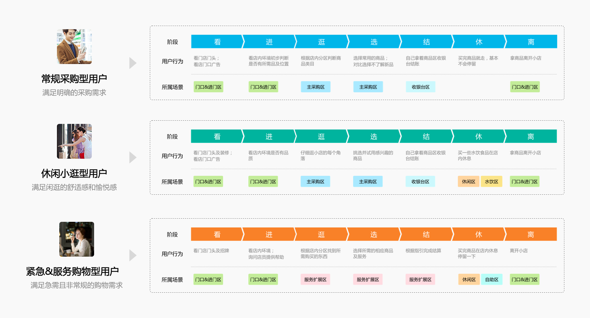图6:不同用户所需的店内功能区梳理