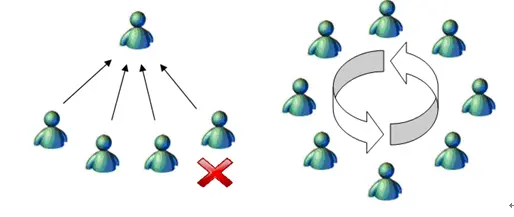 不要走101火箭少女的C位,也就是不要如左图这样围着C位,而是推荐围成圈或围着Backlog(如有条件可以使用电子白板),这样可以保证每个成员的发言都是面向整个团队,而不是面向C位。