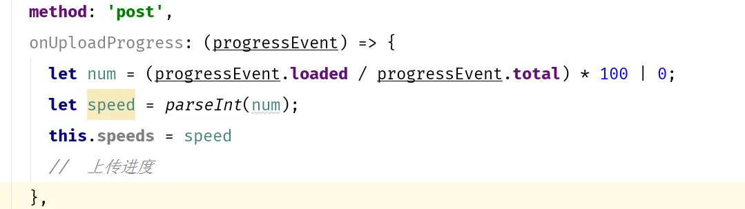 获取上传图片的尺寸我用的是new Image()再用onload事件获取图片的尺寸。获取上传进度我用的是axios的onUploadProgress计算出上传百分比
