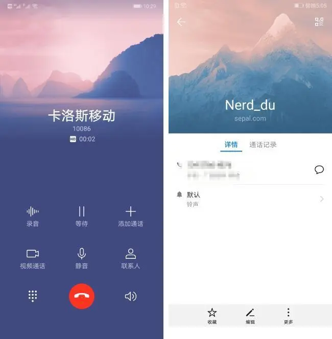 在视觉设计上,我们采用了更多源于自然的视觉元素。例如在全新的联系人头像设计里,我们使用了山、水、冰、石等自然风光。在来电通话界面和音乐播放界面,我们加入了水面倒影效果,来打造沉浸式的全面屏体验。此外,我们还希望充分还原真实的立体感,例如在动态 banner 卡片的边缘,以及时钟指针的边缘加入阴影等等。这样的例子在 EMUI 9.0 中还有很多,我们希望能够通过这些视觉上的元素,让用户在使用 EMUI 9.0 的过程中,充分体会到一种「精致感」。