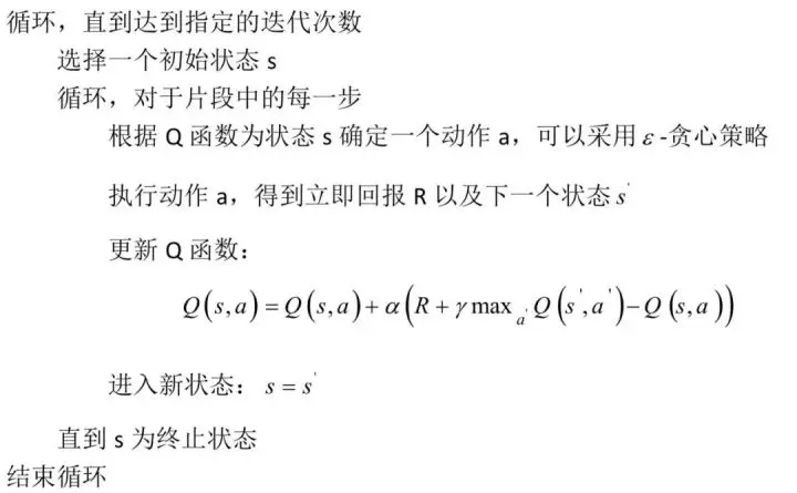 称为利用(exploitation)。第3种是前两者的结合,即ε-贪心策略。执行完动作之后,进入状态s',然后寻找状态s'下所有动作的价值函数的极大值,构造更新项。算法最终会收敛到动作价值函数的最优值。