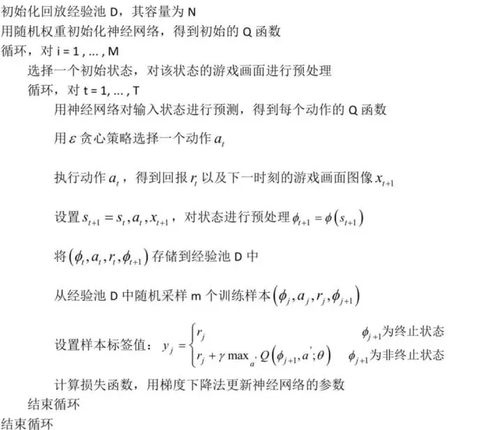 损失函数用神经网络的输出值与Q学习每次迭代时的更新值构造,是神经网络的输出值与Q函数估计值之间的误差,与Q学习中的更新项相同: