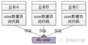 各个业务线都是自己通过DAO写SQL访问user库来存取用户数据,这无形中就导致了代码的拷贝。