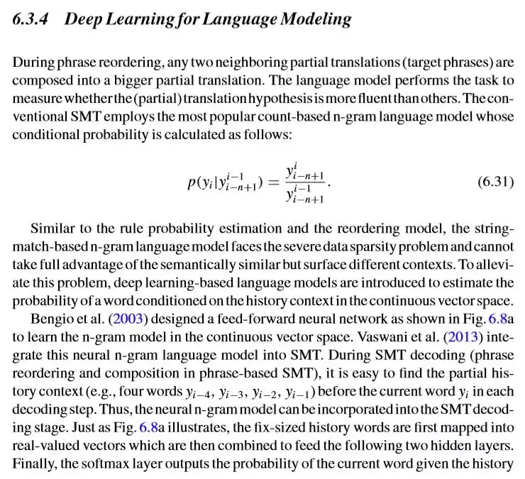 此外,读者可以看看原书语言建模与基于注意力的机器翻译两小节截图,从而对整本书的风格与内容有大概的了解:
